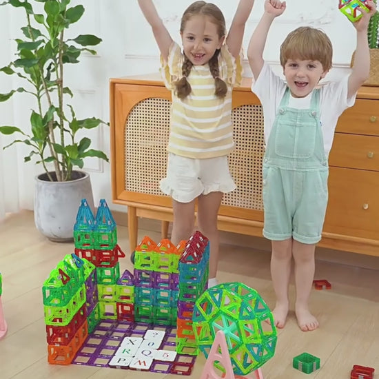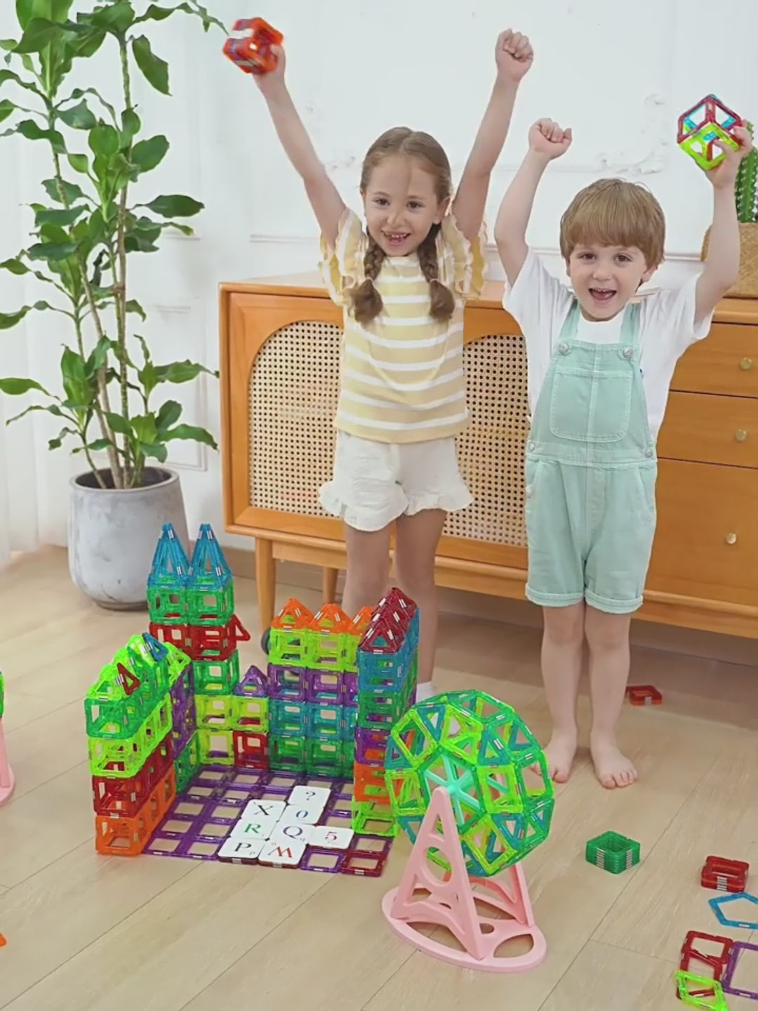 Gi barna timevis med kreativ lek og læring med dette fargerike magnetiske byggesettet! Perfekt for å utvikle fantasi, logisk tenkning og motorikk – samtidig som det er gøy!